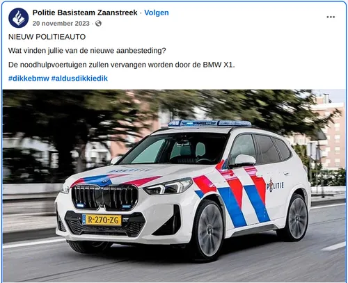 De nieuwe basispolitievoertuigen van de Nationale Politie zijn de Ford Kuga Full Hybrid en de BMW X1. De auto’s worden ingezet voor de noodhulp en zullen vanaf deze maand voor het eerst op straat te zien zijn. Gisteren werden de nieuwe politieauto’s gepresenteerd na een uitgebreide aanbestedingsprocedure