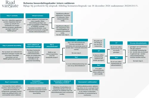De Raad van State heeft geoordeeld dat intern salderen niet meer mag worden betrokken in de zogenoemde voortoets, dus bij de vraag of een natuurvergunning voor een project nodig is.Het mag nog wel bij de vraag of een natuurvergunning voor een project kan worden verleend. De mogelijkheden voor het intern salderen worden hierdoor beperkt.