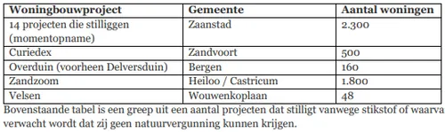 Zowe In Noord-Holland krijgt maar liefst 99,5 procent van de woningbouwprojecten met stikstof te maken. Hoe dichter de nieuwe woningen bij stikstofgevoelige natuurgebieden liggen, hoe ingewikkelder het is om een natuurvergunning te krijgen. Ruim 41 procent van de geplande woningen ligt binnen vijf kilometer afstand van stikstofgevoelige natuurgebieden. In Zaanstad ging het in de inventarisatie van de provincie liefst veertien projecten.