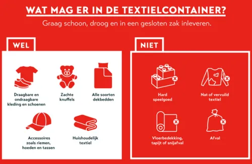 Door textiel te verbranden stijgt de afvalstoffenheffing, omdat deze gebaseerd is op de hoeveelheid restafval. En verbranden is onnodig. Er staan maar liefst 72 textielcontainers verspreid over de hele gemeente waar overbodig textiel in wordt verzameld - ook oud en kapot textiel is welkom, zolang het maar in een gesloten zak zit. Ook steeds meer winkels in Zaanstad nemen textiel in.