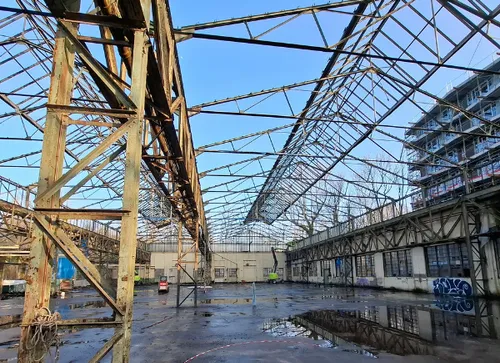 Zo wordt gebouw 320 een parkeergebouw voor de (toekomstige) bewoners van Hembrug. Dat vormde nog een uitdaging: het pand had zo lang bloot gestaan aan alle weersinvloeden dat sommige delen grondig aangepakt of soms zelfs gesloopt moeten worden om veilig weer in gebruik te kunnen worden genomen. Zoals het dak. De sloop daarvan is nu afgerond en er wordt gestart met herstel van de rest van het monumentale gebouw.