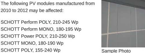 De Nederlandse Voedsel- en Warenautoriteit waarschuwt dat smmige zonnepanelen van Ecoran GmbH (voorheen Schott Solar) een schok kunnen geven als ze worden aangeraakt. Dat komt omdat de achterpanelen een slechte kwaliteit hebben. Vooral niet aanraken dus.
