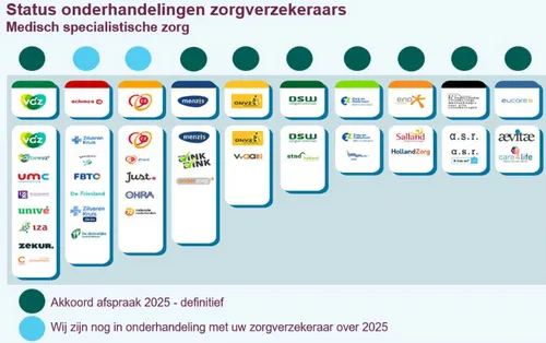 Het Zaans Medisch Centrum heeft intussen twee maanden na het ingaan van 2025 nog steeds geen contracten met alle zorgverzekeraars waarmee het afspraken wil maken kunnen sluiten. Dat blijkt uit gisteren gepubliceerde overzichten die echter gedateerd zijn op 10 februari.