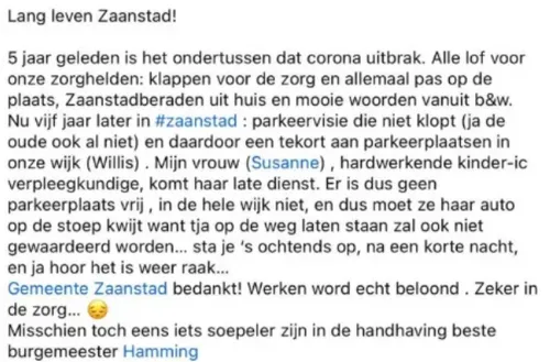Handhaving houdt geen rekening met de persoonlijke omstandigheden van bewoners, zoals onregelmatige werktijden en zorg en voert alleen het beleid uit. 'Dat betekent dat er bij een overtreding handhavend wordt opgetreden. Het is niet (technisch en/of juridisch) uitvoerbaar om hier op basis van Facebook-uitingen uitzonderingen op te maken.' De laatste opmerking verwijst naar een klacht op Facebook (zie hieronder) die het balletje voor DZ aan het rollen bracht.