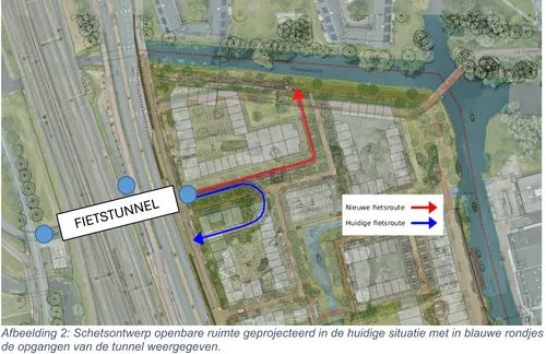 De tunnel blijft wel toegankelijk voor fietsers tussen Westerwatering en de Provincialeweg. Fietsers kunnen aan de kant van Oud-West gebruik blijven maken van de westelijke opgang, die aansluit op het snelfietspad en vervolgens de Mauvestraat. Voetgangers kunnen gebruik blijven maken van de trap aan de parallelweg van de Provincialeweg. Op de plek van de huidige bocht aan de oostelijke kant van de Provincialeweg komen huizen. In de toekomst loopt deze opgang rechtdoor en vervolgens linksaf richting het Dik Trompad.
