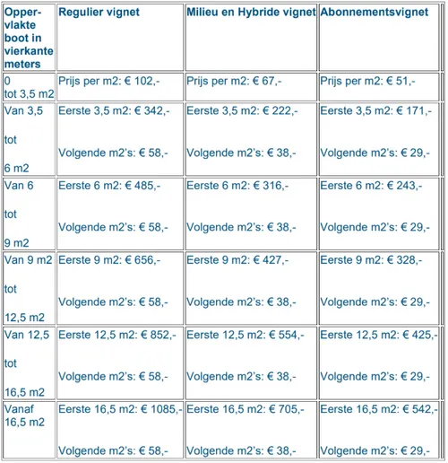 Er is gekozen voor vaste jaartarieven, omdat deze eenvoudig en kostenefficiënt zijn in de uitvoering. Verschillende typen vaartuigen profiteren in gelijke mate van de voorzieningen, waardoor differentiatie naar type of grootte niet aan de orde is. Een dergelijke differentiatie zou bovendien in strijd zijn met het gelijkheidsbeginsel. Differentiatie op basis van vaarsnelheid, motortype of gebruiksfrequentie is niet overwogen, omdat deze criteria niet handhaafbaar zijn.