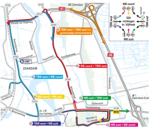 Voor de tijdelijke omleiding wordt gebruikgemaakt van een zogenoemde divergerende diamantaansluiting of Diverging Diamond Interchange, afgekort DDI. Het is een unieke aanpak waarbij gekozen wordt om de rijbanen te verleggen in tegengestelde richting.