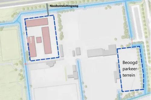 Starterswoningen hebben een parkeernorm van één parkeerplaats per woning in de stedelijke zone matig stedelijk en daar vallen ook deze flexwoningen onder. Dit betekent dat de parkeereis volgens het parkeerbeleid 172 plaatsen is. Daar is geen plek voor, maar ook daar is wat op gevonden. Voor de verschillende doelgroepen die in de woningen komen wordt een aparte parkeernorm toegepast: voor de starters van 0,6, voor de statushouders van 0,07 en voor spoedzoekers van 0,5 per bewoner. Daar bovenop wordt een reductie van tien procent toegepast vanwege de afstand van het project tot een OV-knooppunt De Vlinder.